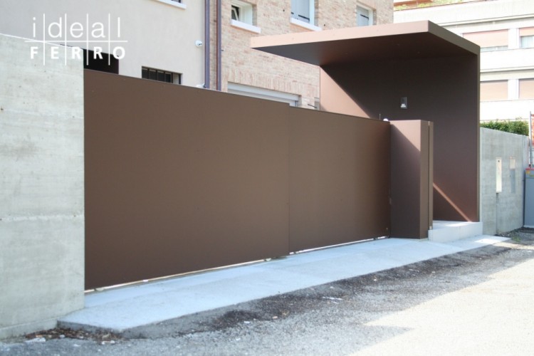 Idealferro2020-04-14T17:11:13+02:00Cancello ad ante scorrevoli sovrapposte e cancello pedonale con lamiere cieche