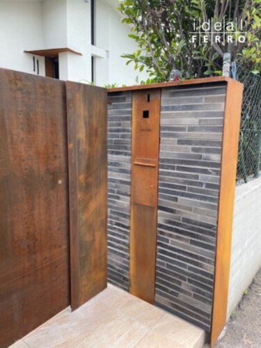 In questo progetto, l’acciaio Corten viene utilizzato come una vera e propria pelle architettonica, rivestendo il muro esistente e integrandolo perfettamente al nuovo cancello.