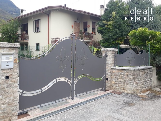 Idealferro2020-04-14T17:11:13+02:00Cancello ad ante scorrevoli sovrapposte e cancello pedonale con lamiere cieche
