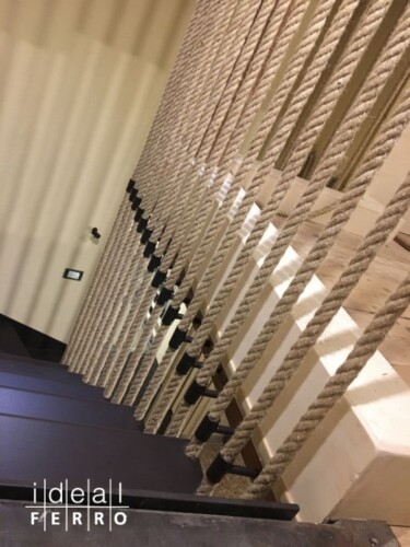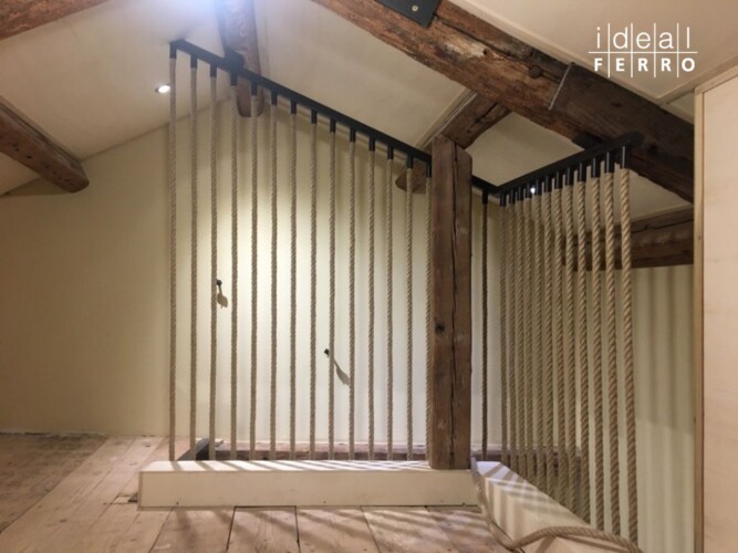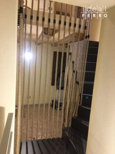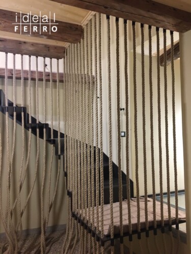 La scala è in ferro verniciato e le cime sono in juta naturale.