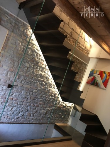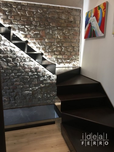 Scala in acciaio corten ossidato ed oliato – parete e porta in vetro accoppiato e temperato.